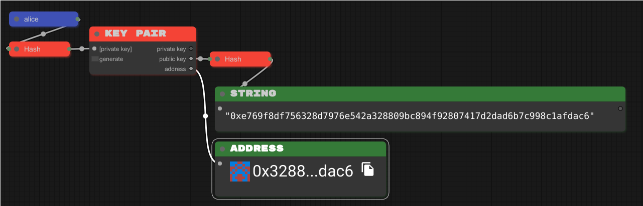 O legal desse workflow é pra notar algo, o endereço gerado pelo KEY PAIR. Se você notar, o address são os 42 últimos caracteres da hash da public key.
