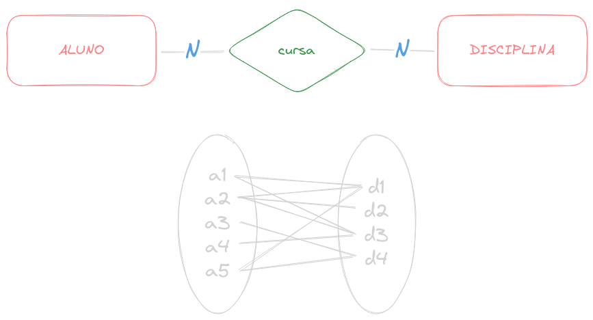 Um relacionamento N:M é um ripelacionamento onde MUITAS entidades estão associadas a MUITAS outras entidades.