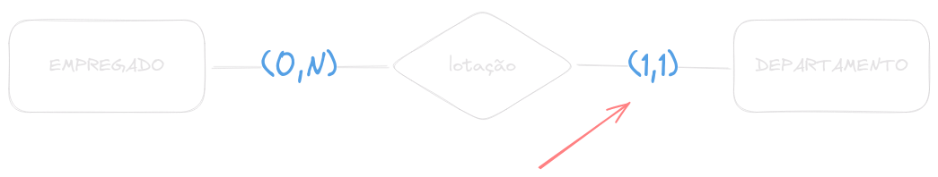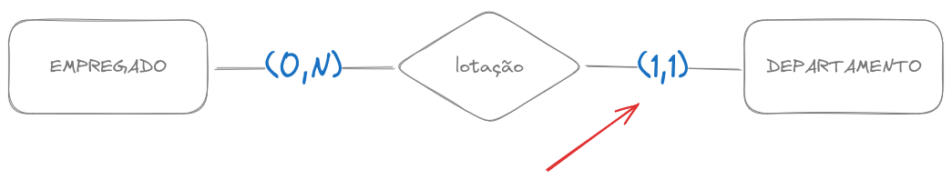 Um empregado obrigatóriamente está lotado no máximo em 1 departamento. Um departamento pode ter até N empregados lotados nele.