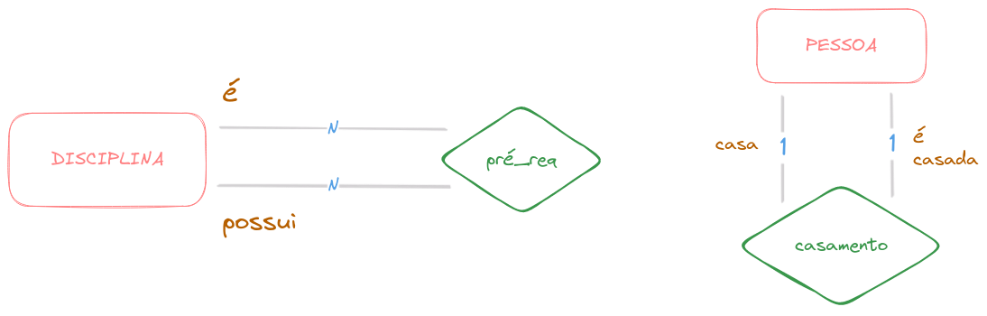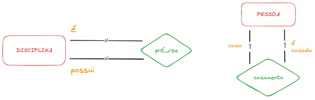 Um relacionamento liga duas entidades, porém, é possível que uma entidade se relacione com outra entidade mais de uma vez.