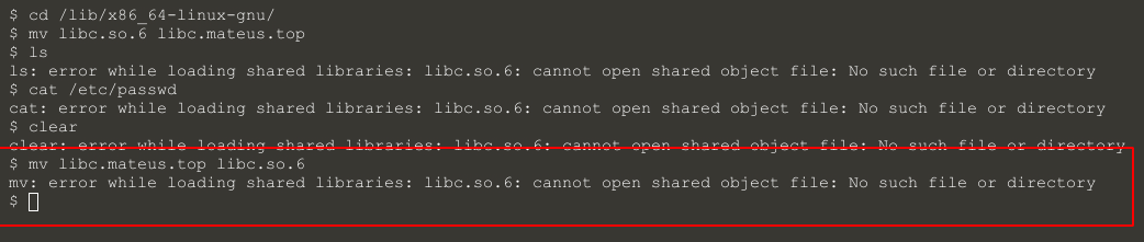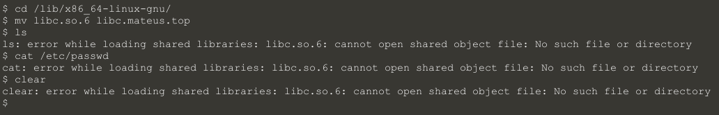 A maioria dos comandos linux usam essa biblioteca para funcionarem. Mas se mudarmos o nome desse arquivo e tentarmos executar o ls?