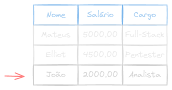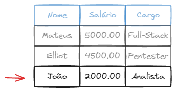 Por exemplo, a tabela abaixo é resultado de um JOIN de 2 outras tabelas. A segunda tabela possui chaves estrangeiras apontando para valores nulos, e a primeira possui tuplas sem conrrespondência na segunda tabela. O resultado do INNER JOIN será apenas as linhas que possuem corrêspondência nas duas tabelas: