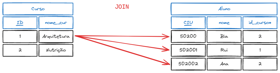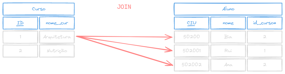 Porém, o benefício do JOIN só será sentido quando as chaves e forem equivalentes, ou seja, , usando a palavra reservada ON (será explicado mais a frente).