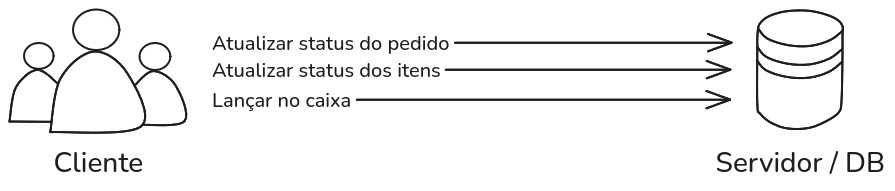 UPDATEAtualizar o status do pedido (fechado, pendente)UPDATEAtualizar o status dos itens do pedido (vendido, pendente)INSERTLançar o valor do pedido no caixa (preço)