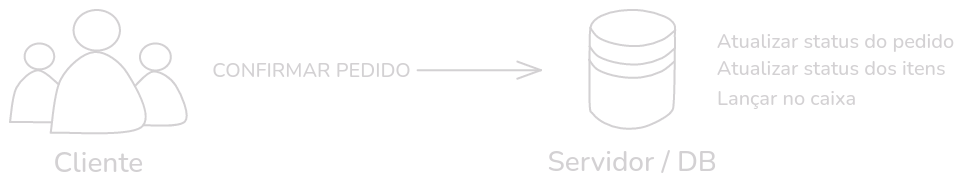 As ações de UPDATE/INSERT/DELETE, apartir daí, ficariam por conta do servidor. A representação gráfica desse modelo é mostrada a seguir (Através do procedimento chamado "CONFIRMAR PEDIDO"):