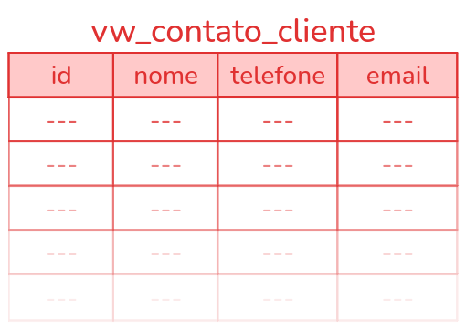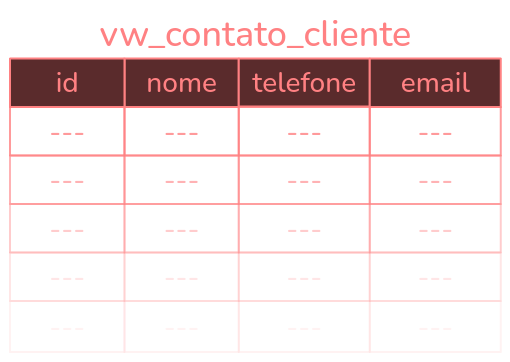 Fisicamente, os dados em vw_contato_cliente são os mesmos que em Cliente, mas a visão vw_contato_cliente é uma forma mais simples de acessar esses dados.