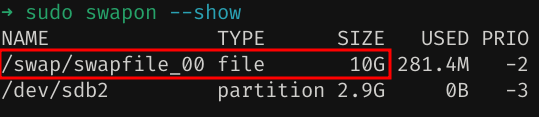 sudo swapon --show
