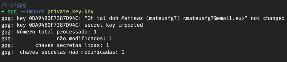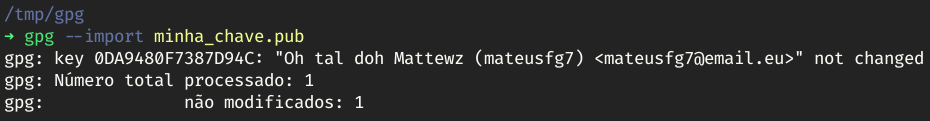 Para importar uma chave pública para nossa keyring usamos a opção --import, e o arquivo da chave: